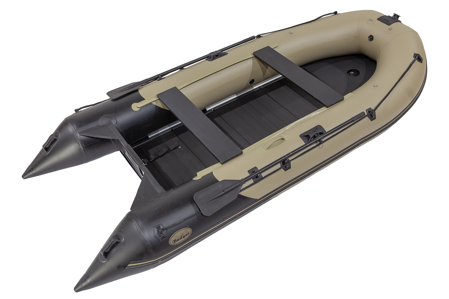 Лодка Badger Sport Line 340 AL - стильная современная лодка под мотор до 15 л.с., предназначенная, главным образом, для активного отдыха на воде. Дополнительные курсовые стабилизаторы (плавники) в кормовой части баллонов обеспечивают регулировку курсовой устойчивости судна, а также способствуют существенному снижению радиуса разворота.